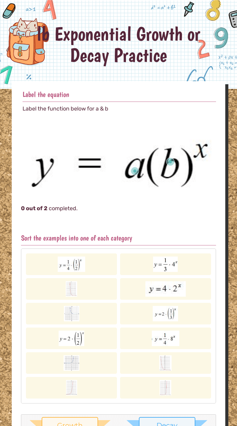 Growth And Decay Worksheet : 9 1 Pg 1 Jpeg 9 1 Notes Y A By A Initial Amount B Growth Decay Exponential Growth Decay Worksheet 8 8 Name Factor 1 T Time Yrs You Start An Course Hero :. Exponential growth and decay word problems:. Useful as a revision tool for higher gcse maths exams. Use this scaffolded worksheet to help students practise plotting an exponential graph or function. The population of smalltown in the year 1890 was 6,250. Which of the following equations represents an exponential decay?